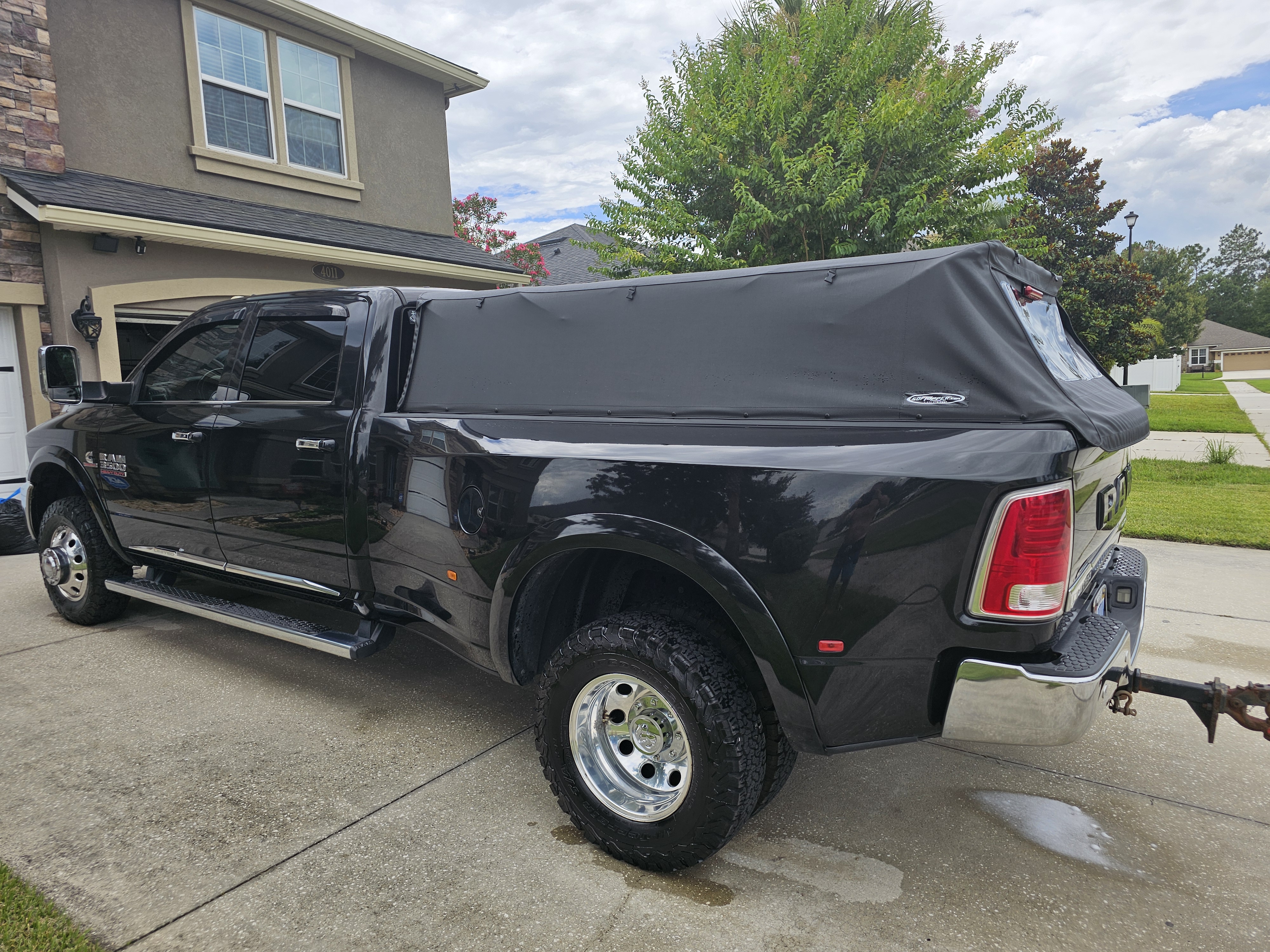 Love this weather resistant topper better than my last hard topper. I can utilize my 5th wheel within a minute without any help. Keeps everything high and dry. Third break light was super easy to install and also ordered tinted back panel. Looking forward to many years of utilization. Keep up the great work and products!