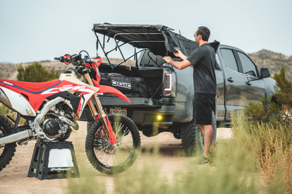 Moto-Cross enthusiast Larry Dwyer needed a cap for his pickup to store and protect his gear during races. Problem was, the bikes couldn’t fit under standard inflexible fiberglass and aluminum toppers.